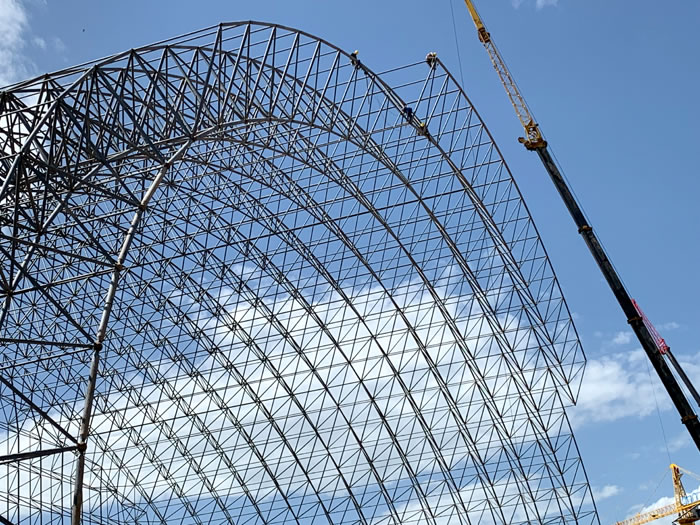 (2)网架加工前应对现场尺寸进行复测,确认无误后方可进行加工、安装;网架制作、运输、安装应遵守《空间网格结构技术规程》JGJ7-2010、《钢网架绥芬河螺栓球节点》JG/T 10-2009、《钢网架绥芬河螺栓球节点用高强度螺栓》 GB/T 16939-2016、《绥芬河钢结构绥芬河工程绥芬河施工规范》 GB50755-2012、《绥芬河钢结构绥芬河工程施工质量验收标准》 GB50205-2020。